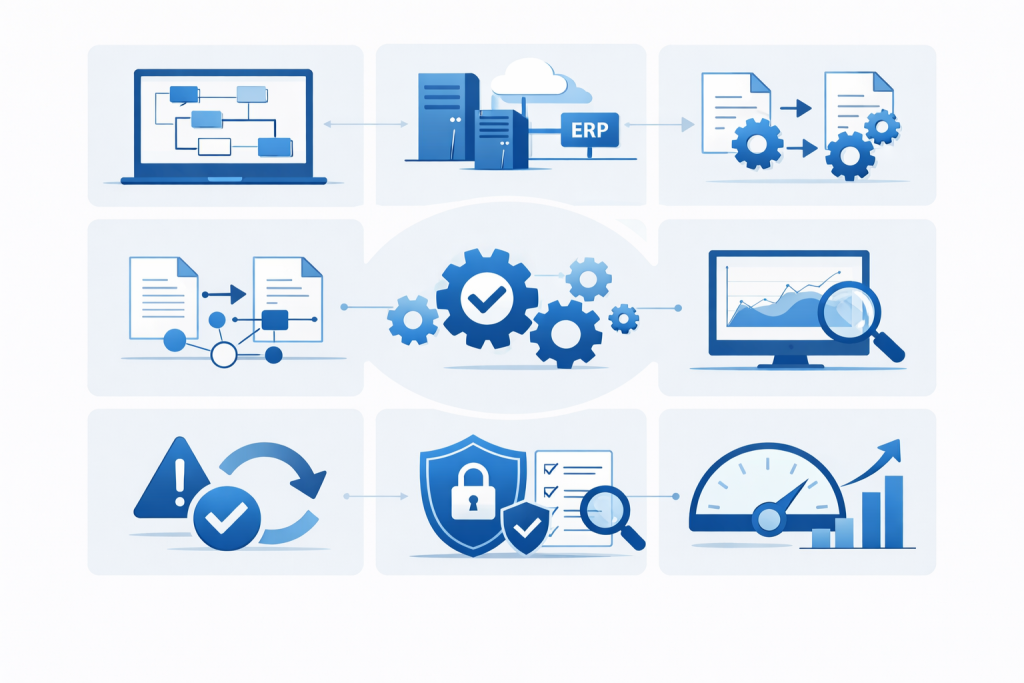 We deploy scalable middleware solutions to manage ERP–ASP communication, validation, monitoring, and compliance workflows.